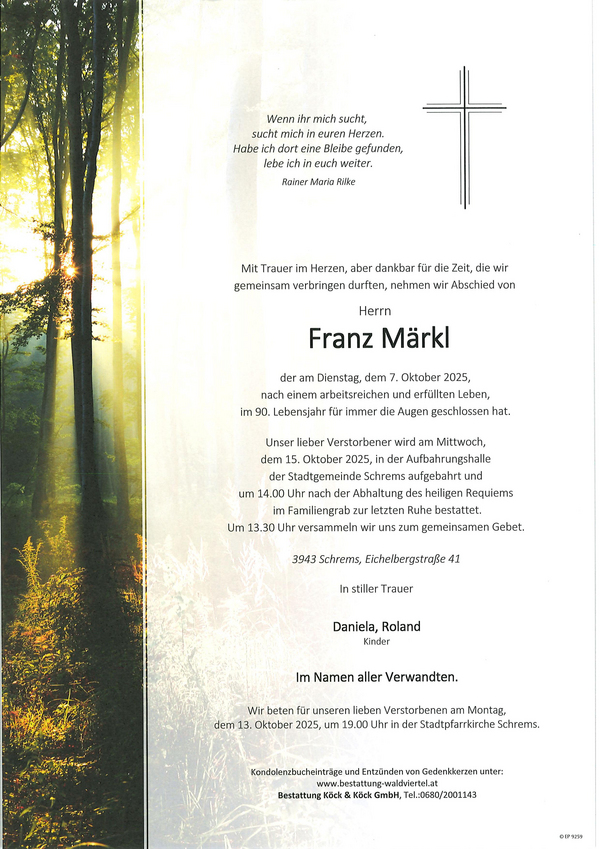 Sie möchten online eine Gedenkkerze anzünden? Hier kommen Sie direkt in die online-Kondolenzbücher der Bestattungsunternehmen: